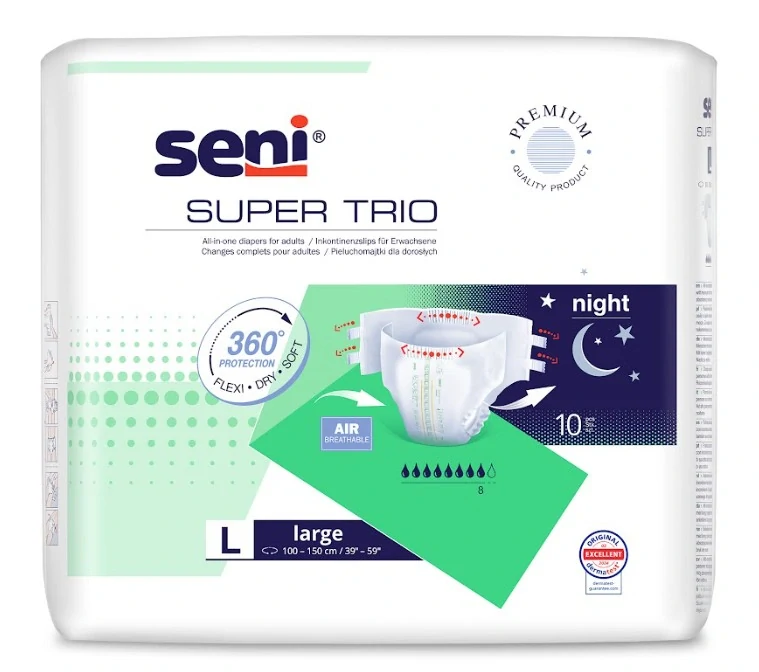 Priedušné plienkové nohavičky Super Seni Trio sú ideálnym riešením pre osoby s ťažkou a veľmi ťažkou inkontinenciou.